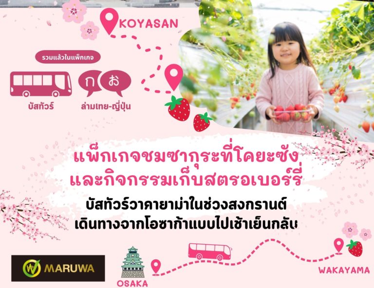 แพ็กเกจบัสทัวร์ชมซากุระบนภูเขาโคยะซัง และกิจกรรมเก็บสตรอเบอร์รี่ (Wakayama)